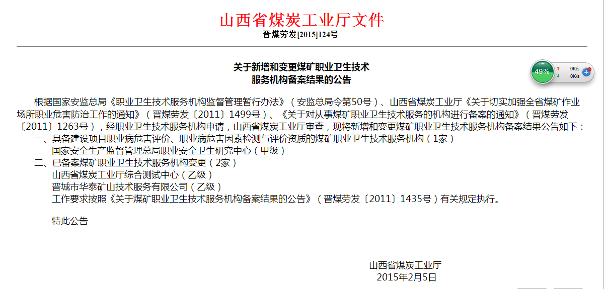 晉城國投華泰科技有限公司(以下簡稱華泰公司)是一家經(jīng)營性國有企業(yè),注冊資金1000.2萬元(由晉城市華泰礦山技術(shù)服務有限公司和晉城澤泰安全技術(shù)服務有限公司合并整合組建,國投全資)。公司持有山西省衛(wèi)生健康委員會頒發(fā)的《職業(yè)衛(wèi)生技術(shù)服務資質(zhì)證書》、山西省應急管理局頒發(fā)的《安全評價機構(gòu)資質(zhì)證書》和山西省市場監(jiān)督管理局頒發(fā)的《檢驗檢測機構(gòu)資質(zhì)認定證書》等資質(zhì),設施設備、能力、資質(zhì)配套齊全。...【詳細信息】